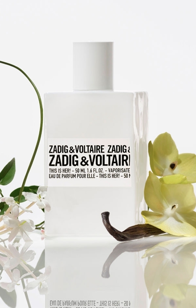 This is Her de Zading & Voltaire es una fragancia de la familia olfativa oriental vainilla, se lanzó en 2016. Las notas de salida son pimienta rosa, jazmín sambac ( sampaguita) y flor de seda; las notas de corazón son crema batida, vainilla y castaña; las notas de fondo son sándalo y madera de cachemira.